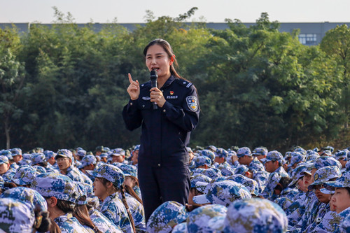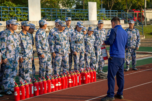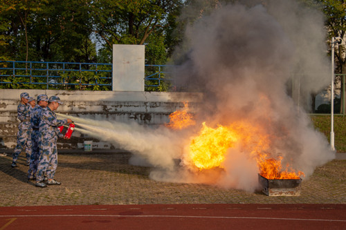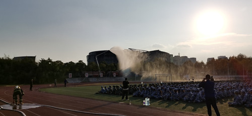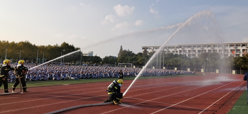 江宁消防高新园中队王军队长结合近期校园发生的消防安全事故向全体新生传递了消防安全的重要性,并详细讲解了如何有效预防校园火灾,如何正确使用常见消防器械、如何及时扑灭初期火灾,发生火灾时如何报警、如何逃生、如何科学自救等知识。他指出,新生从跨进大学校门的第一天,就应牢固树立起消防安全意识,提高在发生火灾等突发状况下的应急逃生和自防自救能力,最大限度地杜绝和减少因火灾事故引起的人员伤亡和财产损失。在消防演练环节,消防队员们展示了消防水带连接、消防水高空喷射、举高喷射消防车车载炮实地出水,指导新生代表使用灭火器有效灭火等实战经验。